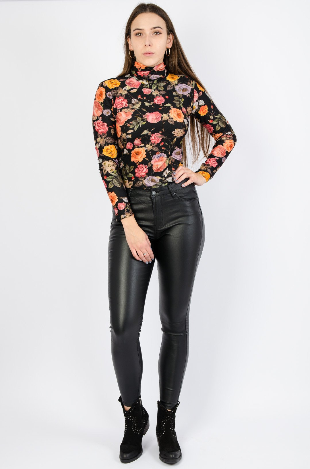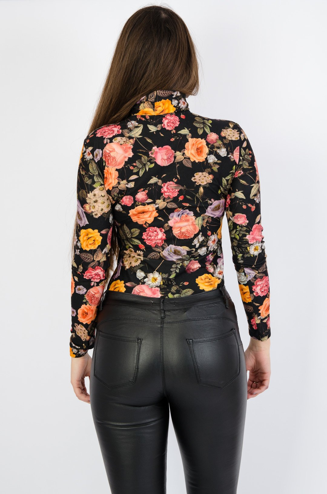 CZARNA BLUZKA Z GOLFEM W KWIATY