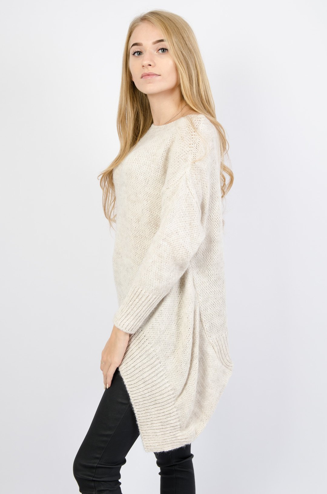 BEŻOWY ASYMETRYCZNY SWETER