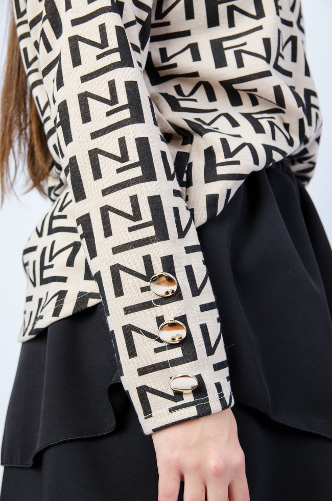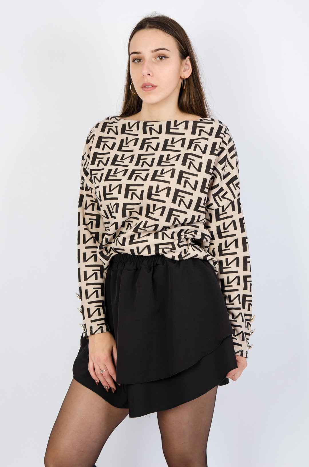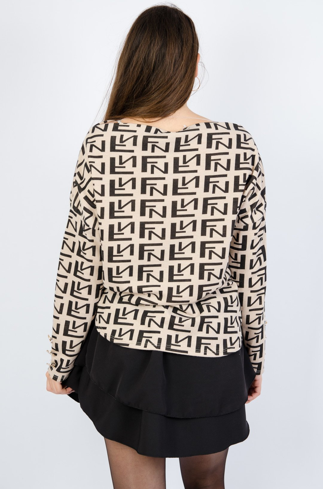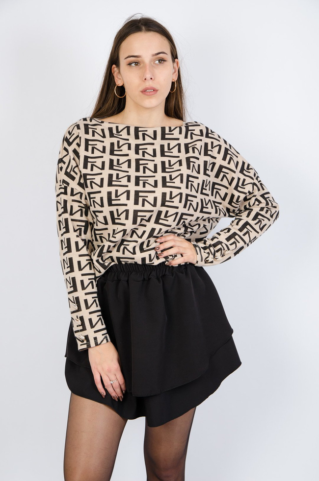 BEŻOWA WZORZYSTA BLUZKA W ŁÓDKĘ -