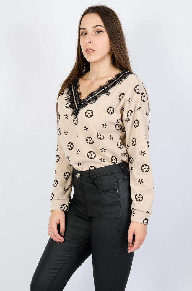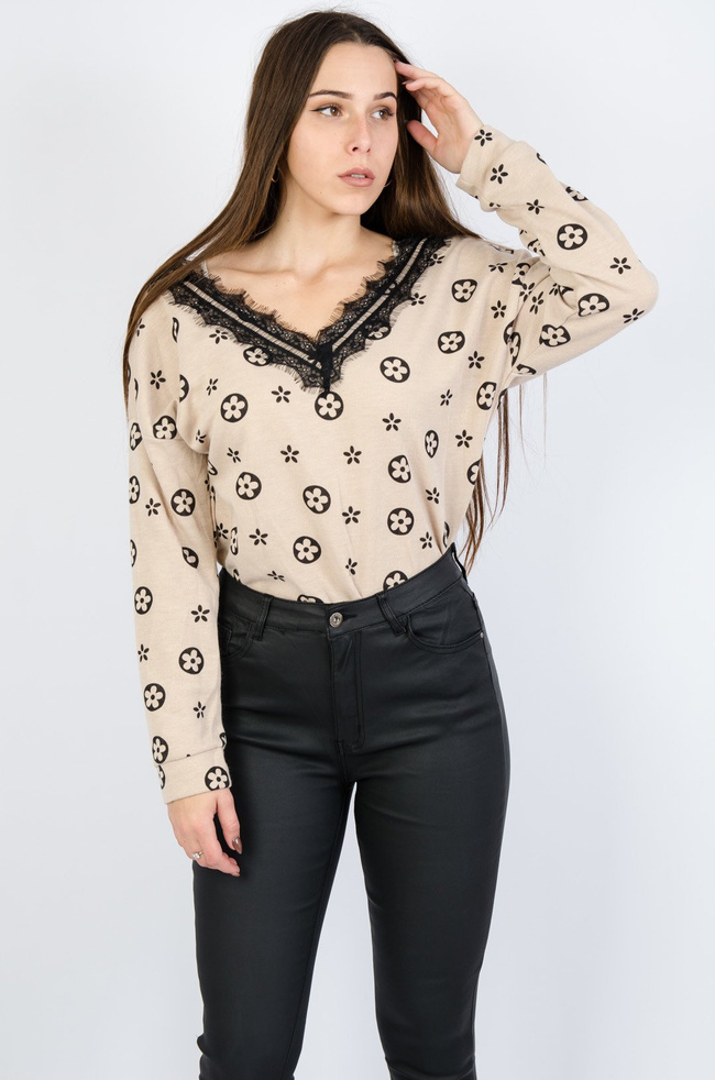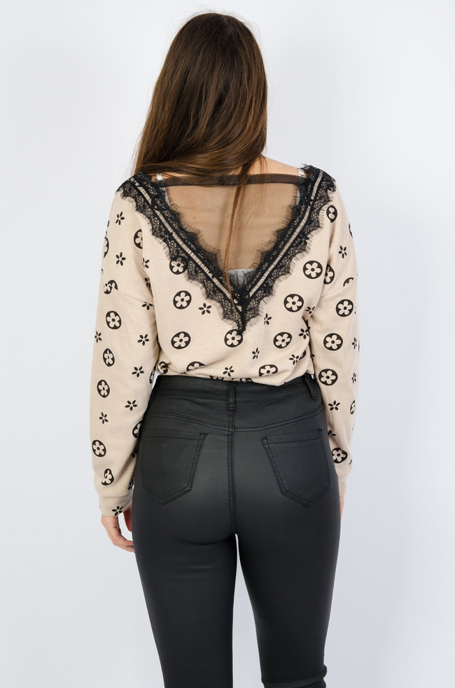 Beżowa bluzka z koronką oraz siateczką na plecach