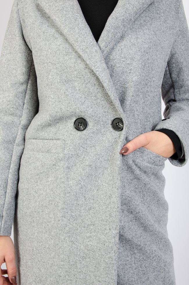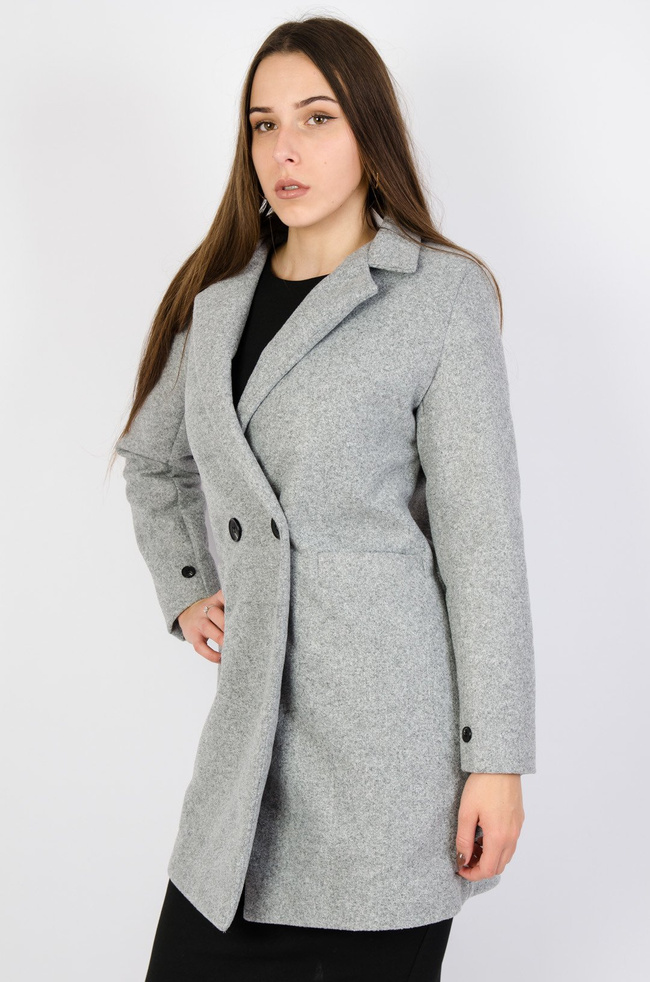 JASNO-SZARY PŁASZCZ Z KOŁNIERZEM- ZAPINANY NA GUZIKI