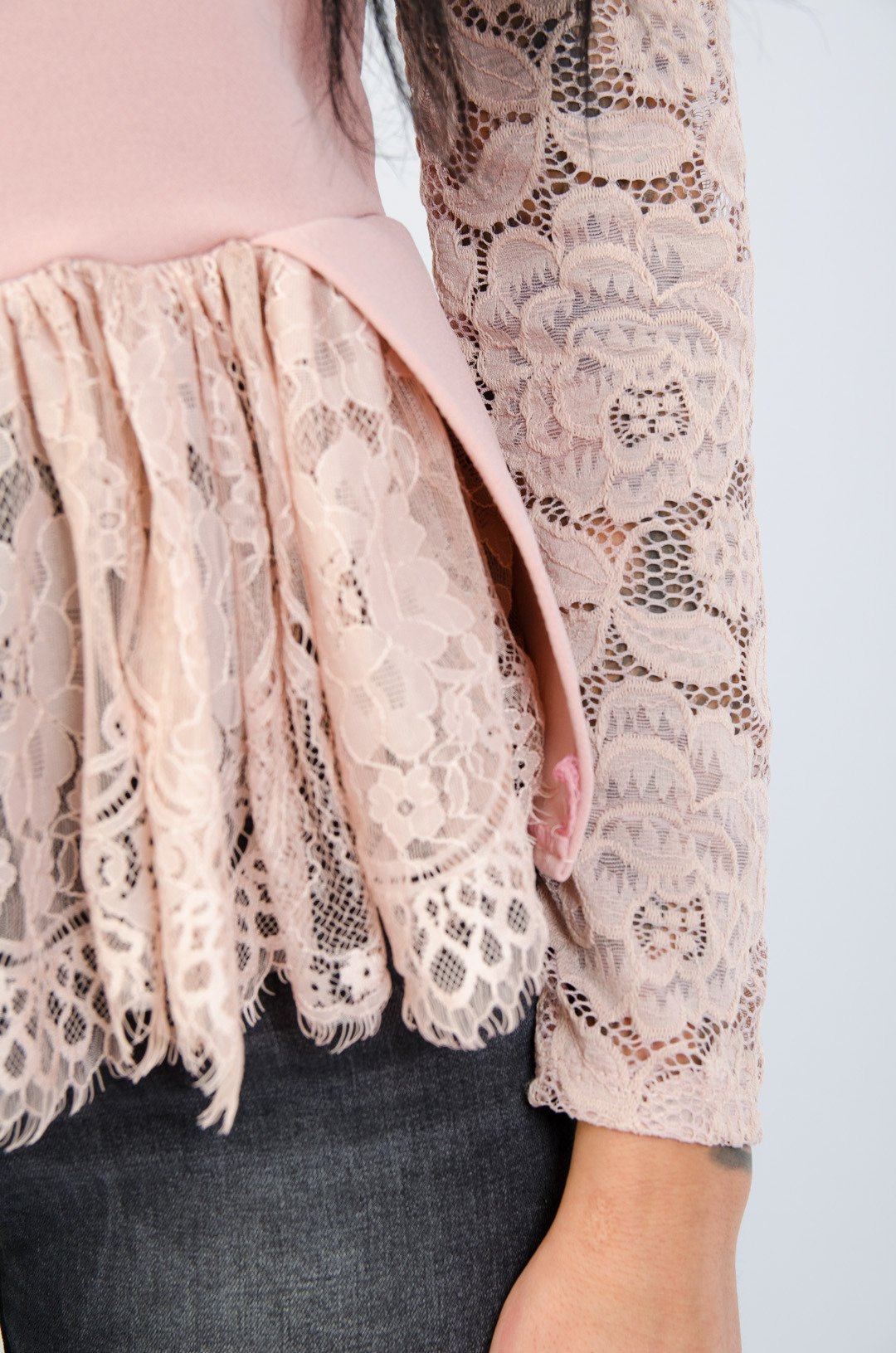 RÓŻOWA KORONKOWA BLUZKA Z BASKINKĄ - ZAMEK Z TYŁU