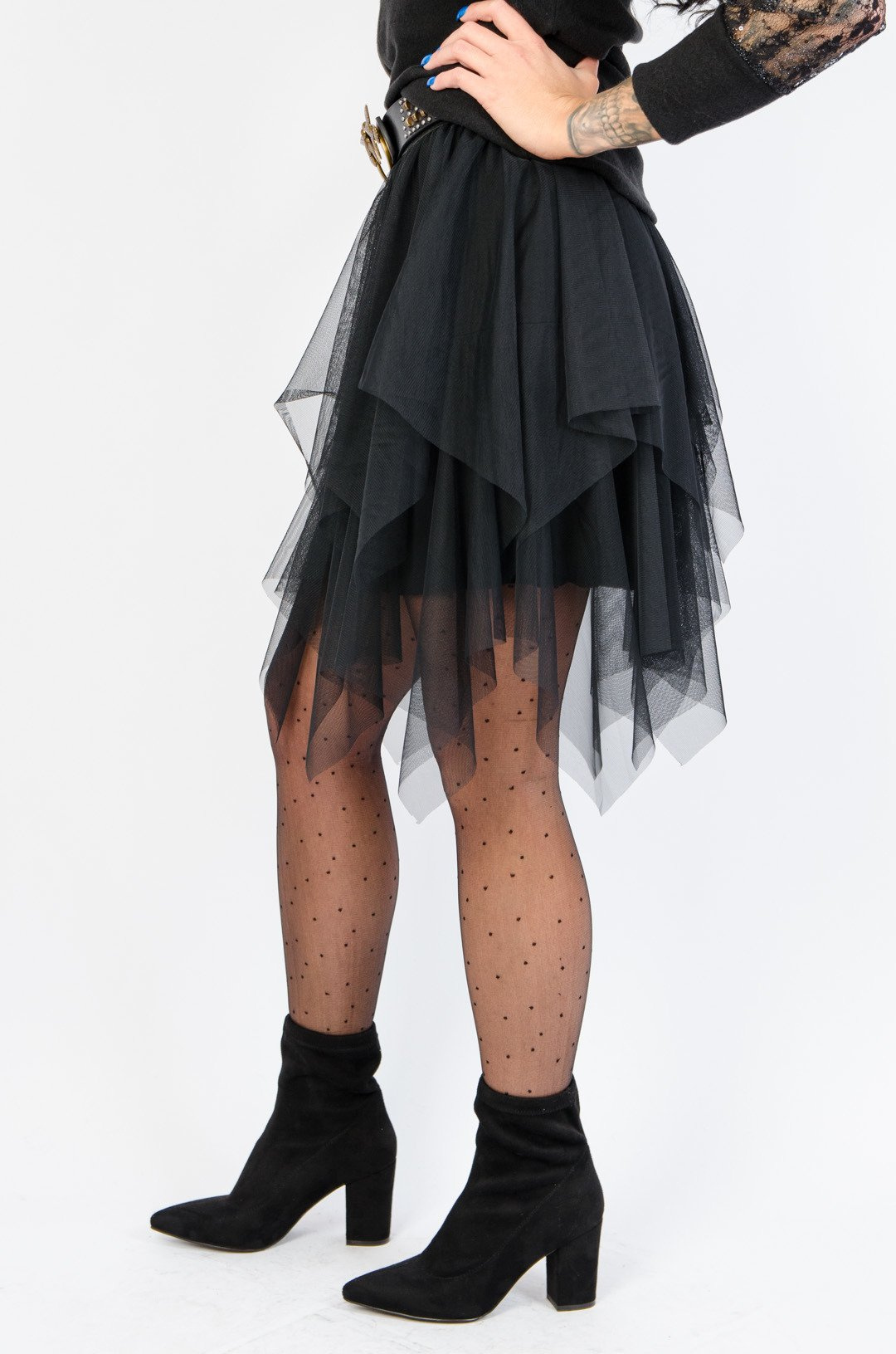 CZARNA SPÓDNICA MINI Z TIULU -GUMA W PASIE