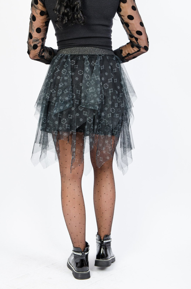 WZORZYSTA SPÓDNICA TIULOWA MINI Z ELASTYCZNYM PASEM