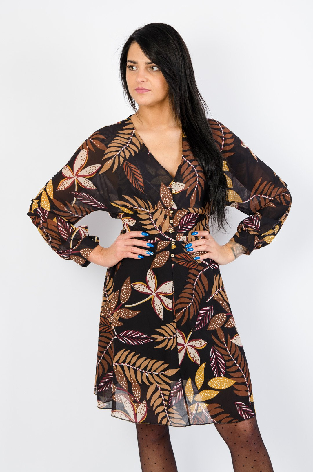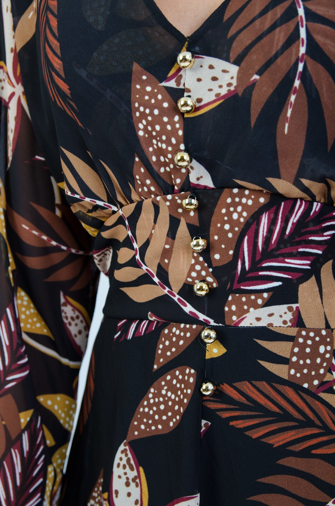 CZARNA SUKIENKA W KWIATY ZE ZŁOTYMI GUZIKAMI