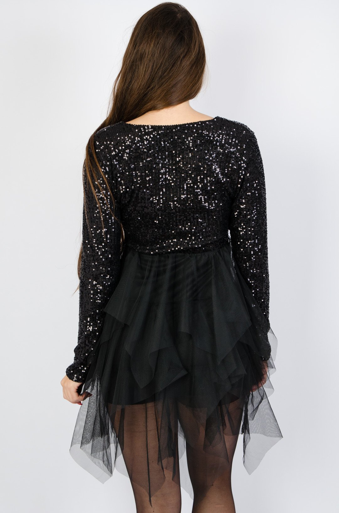 CZARNA TIULOWA SUKIENKA Z CEKINAMI
