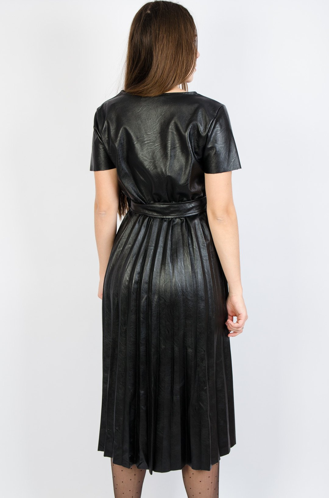 Czarna sukienka z plisowanym dołem-imitacja skóry