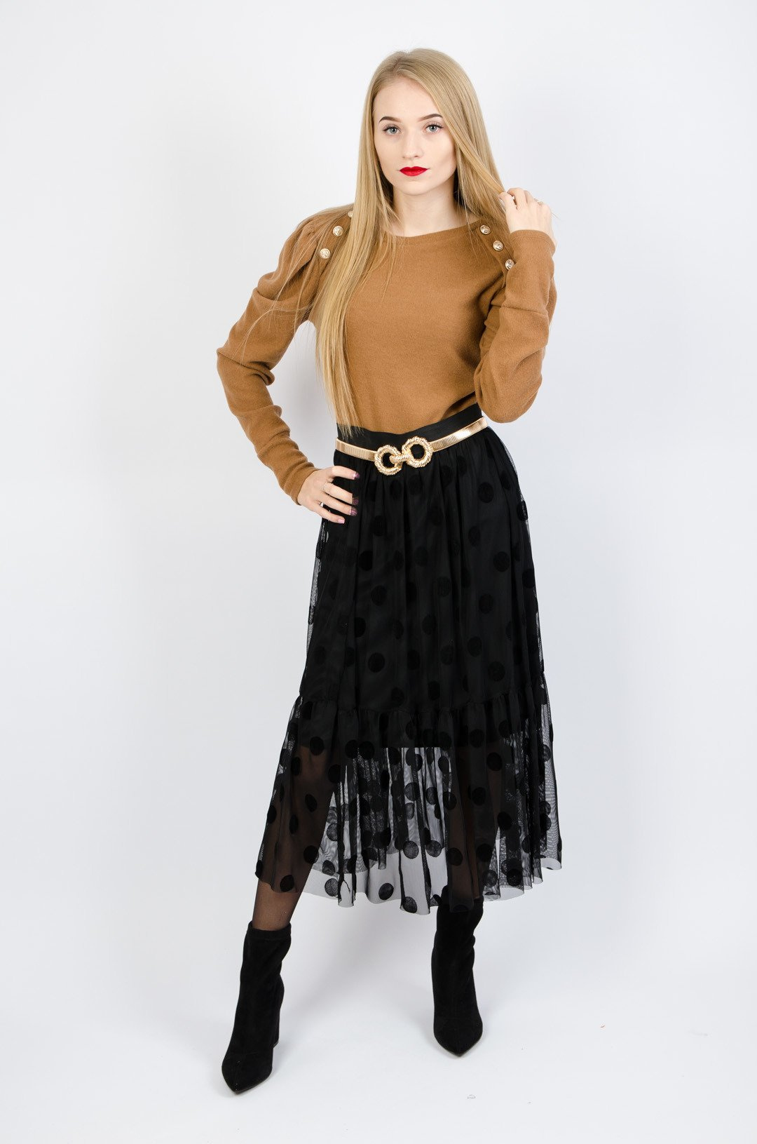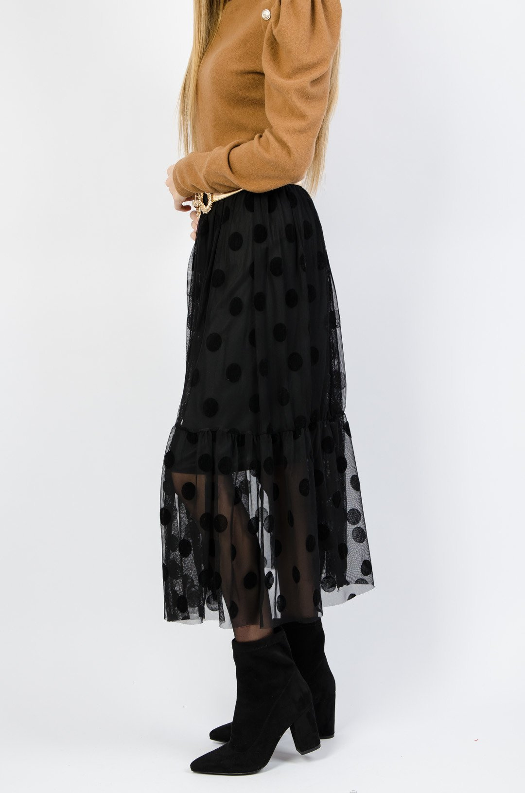 CZARNA TIULOWA SPÓDNICA W KROPKI