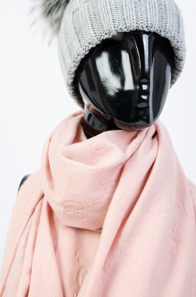 JASNO-RÓŻOWY SZAL WYKOŃCZONY FRĘDZLAMI