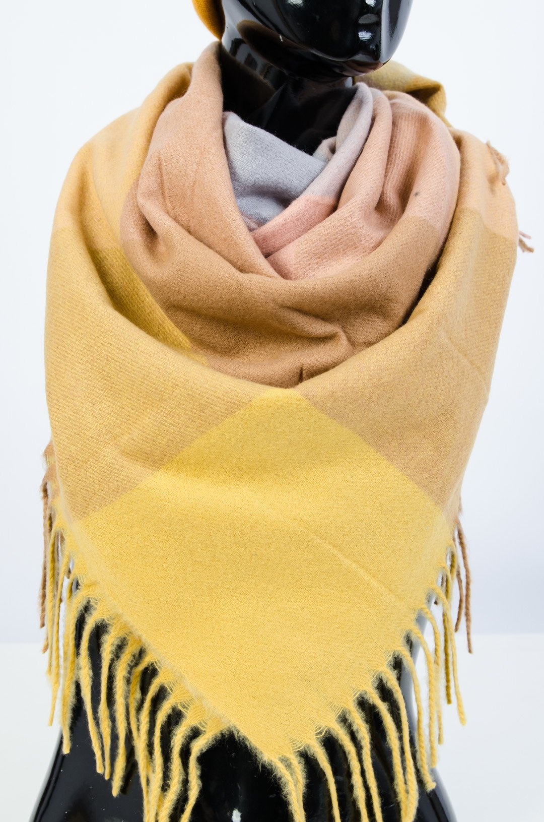 KOLOROWY SZAL W KRATĘ WYKOŃCZONY FRĘDZLAMI