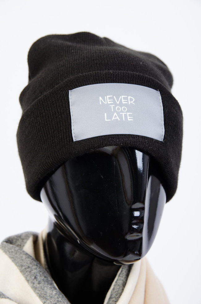 CZARNA CZAPKA Z NAPISEM "NEVER TOO LATE"