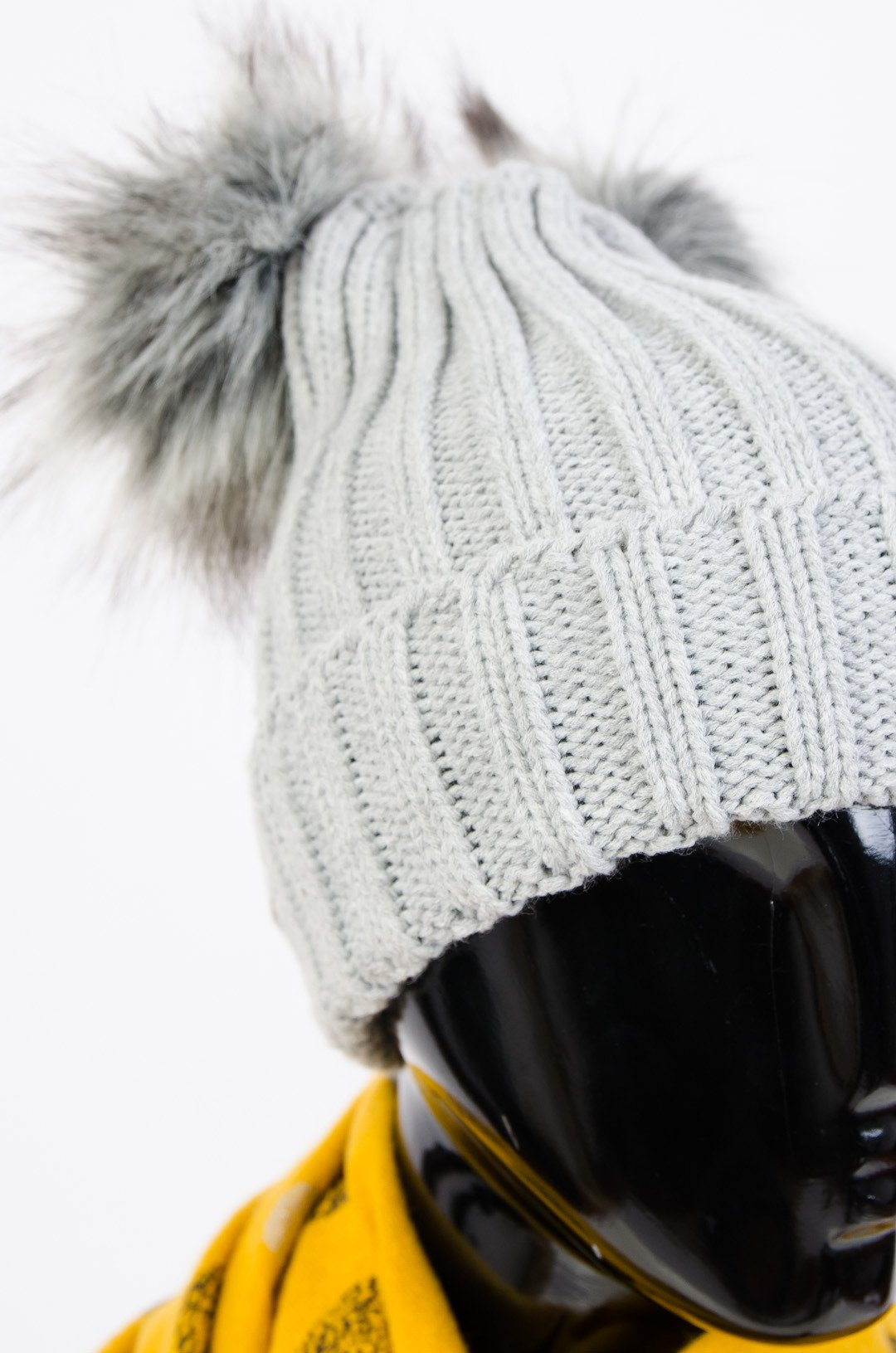 SZARA ZIMOWA CZAPKA Z DWOMA POMPONAMI