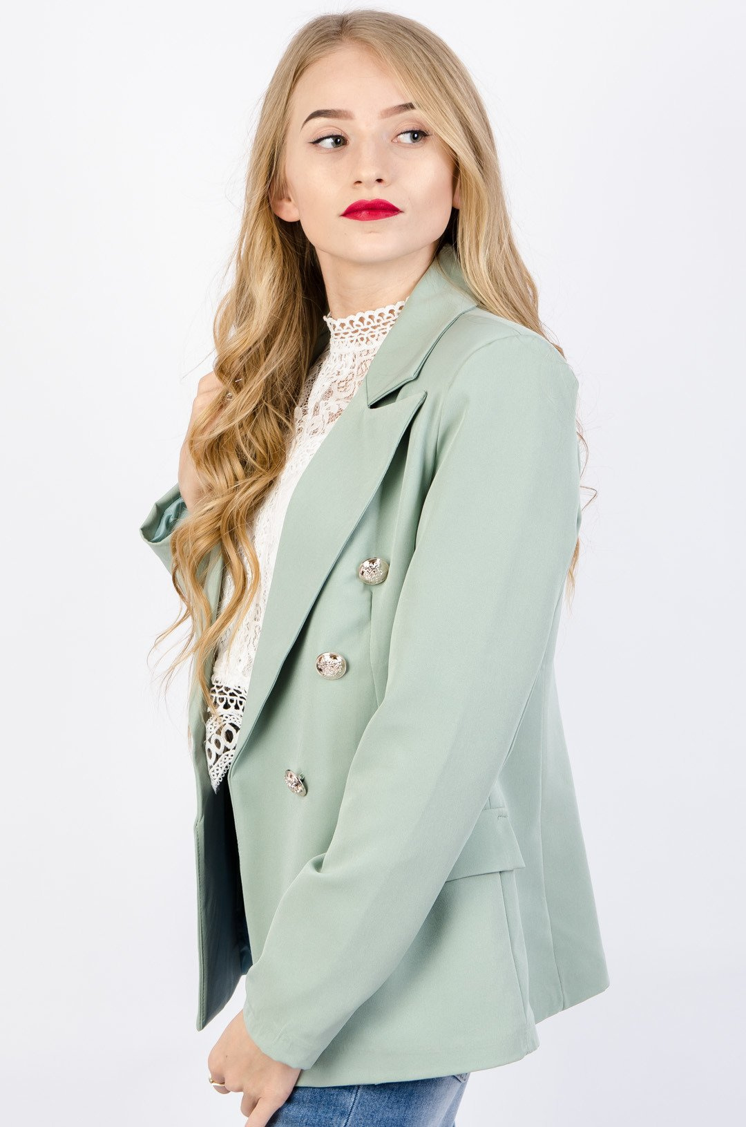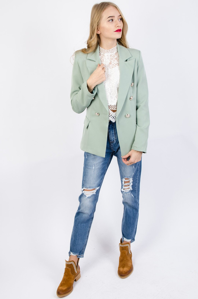 ZIELONA MARYNARKA ZE SREBRNYMI GUZIKAMI