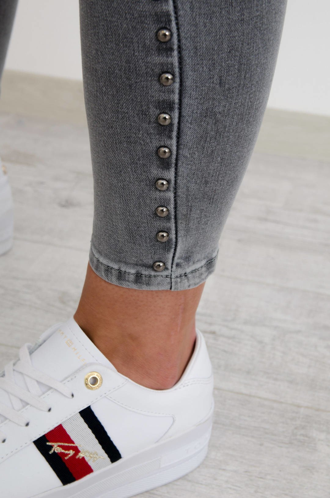 SZARE SPODNIE JEANSOWE Z DŻETAMI - WYSOKI STAN