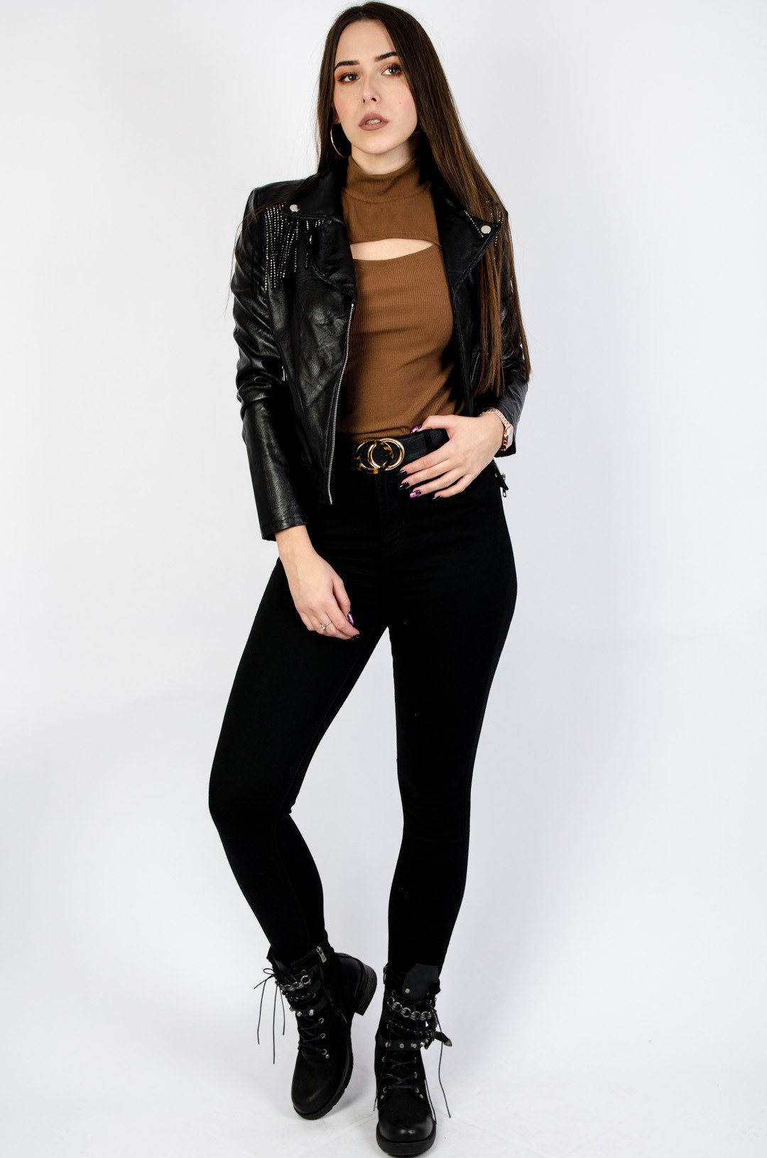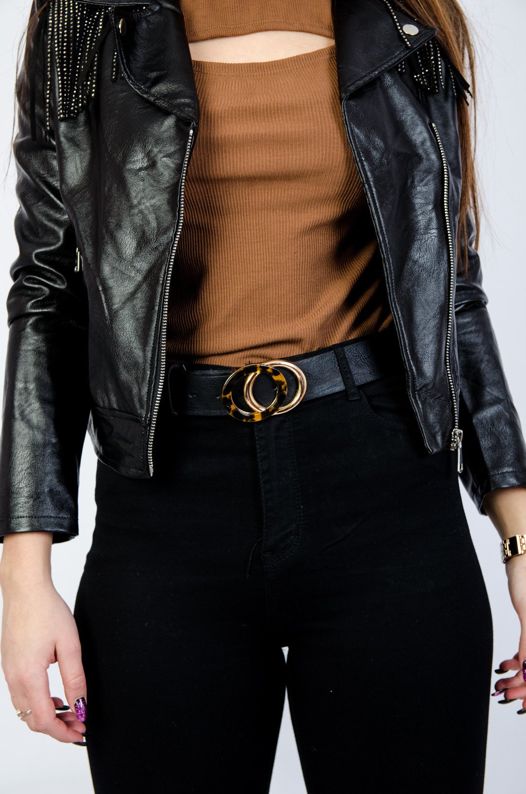 CZARNY PASEK ZŁOTĄ KLAMRĄ