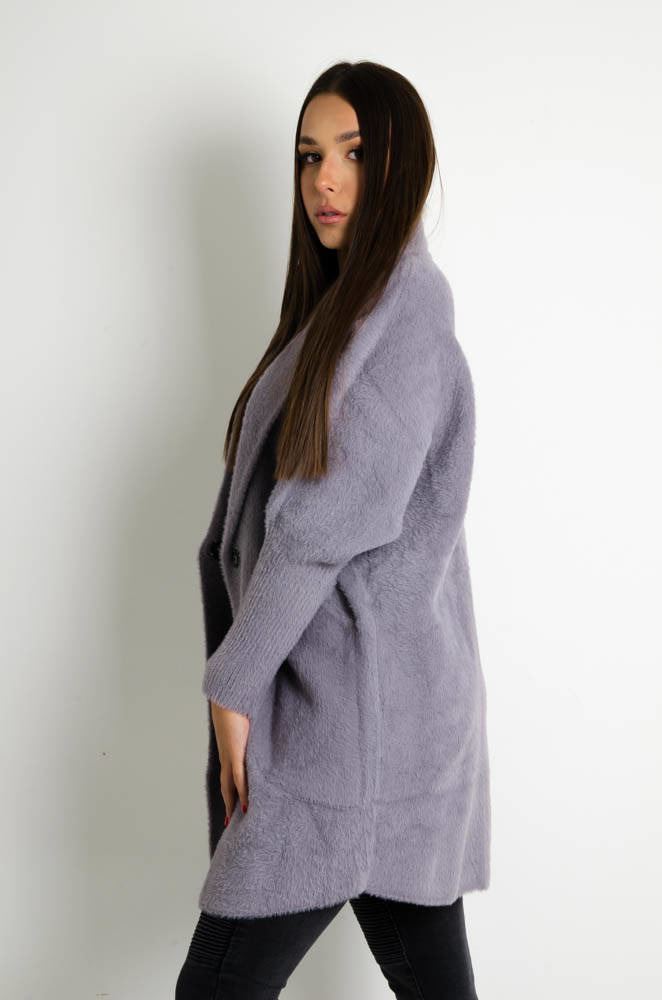 PŁASZCZ DŁUGI WEŁNIANY ALPAKA- SZARY