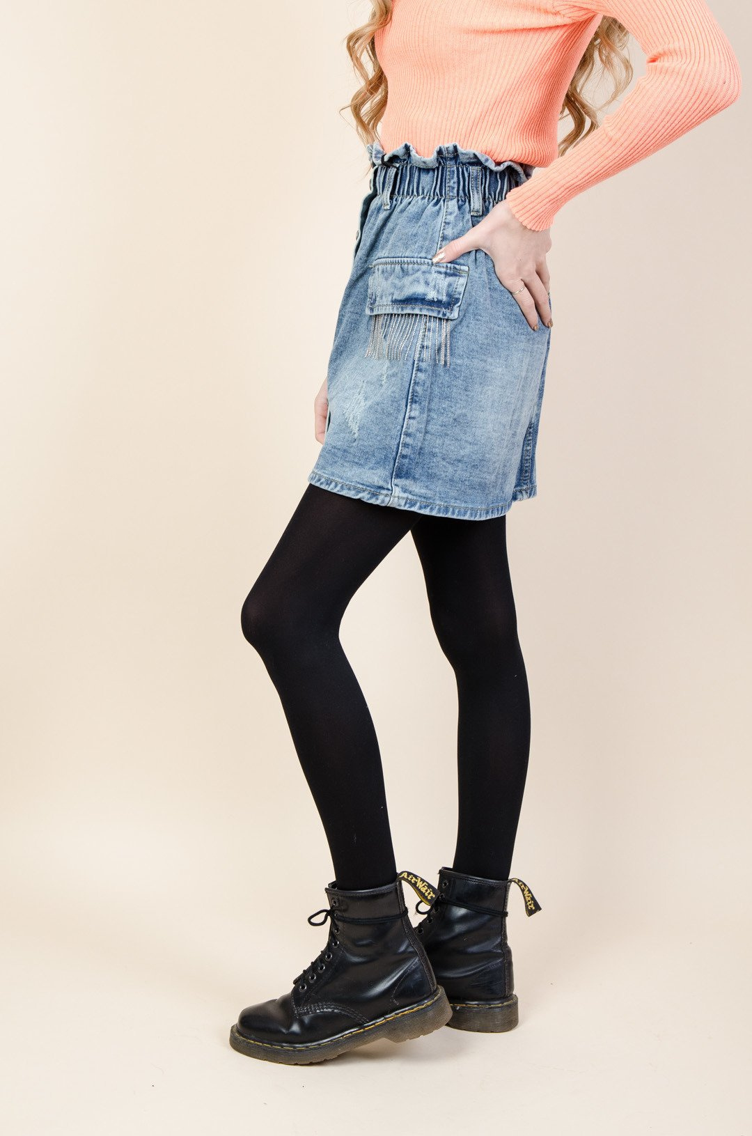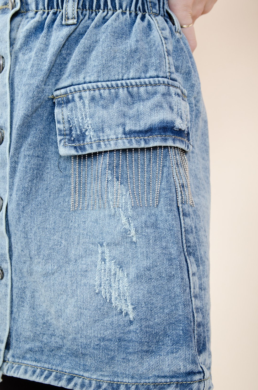 Jeansowa spódnica zapinana na guziki z łańcuszkami