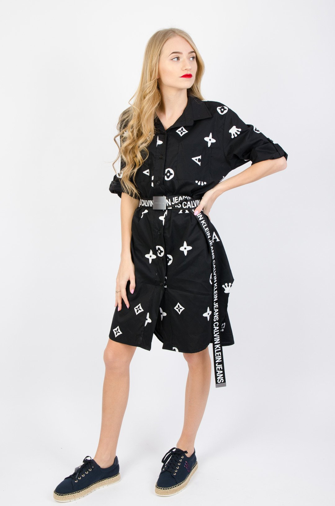 DŁUGA CZARNA ASYMETRYCZNA KOSZULA Z NADRUKIEM