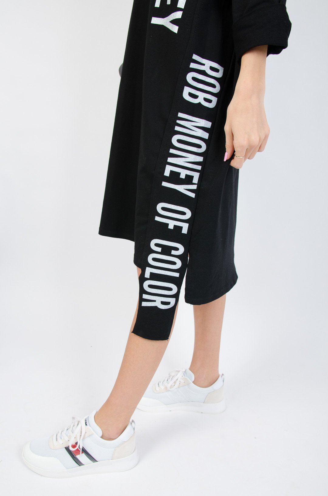 ASYMETRYCZNA DZIANINOWA SUKIENKA Z NAPISEM "ROB MONEY"