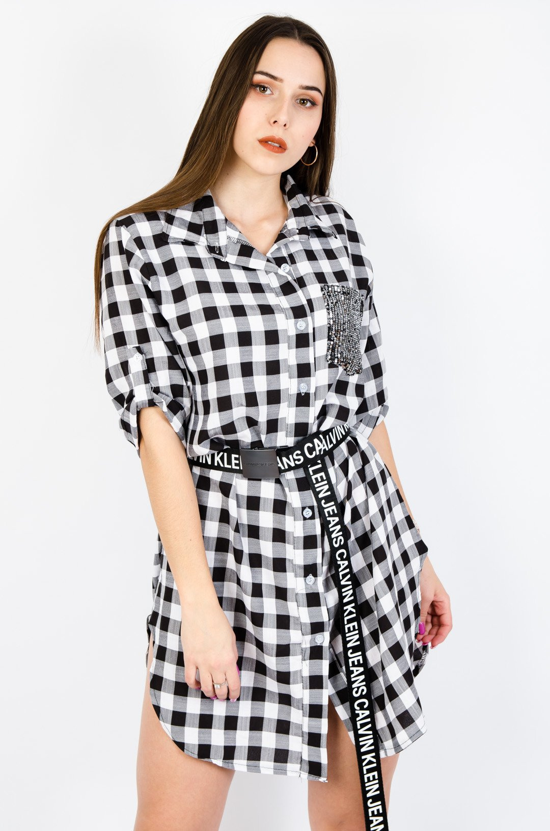 SUKIENKA KOSZULOWA W KRATĘ