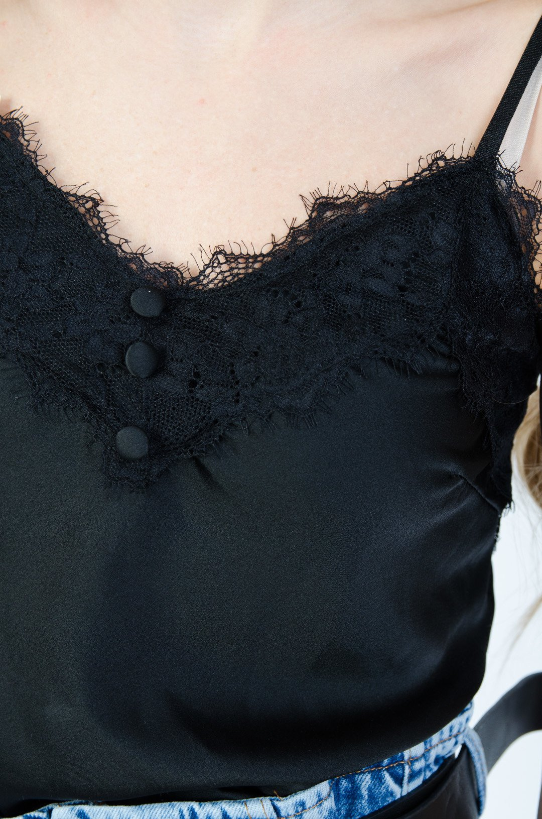 CZARNA SATYNOWA BLUZKA NA CIENKICH RAMIĄCZKACH