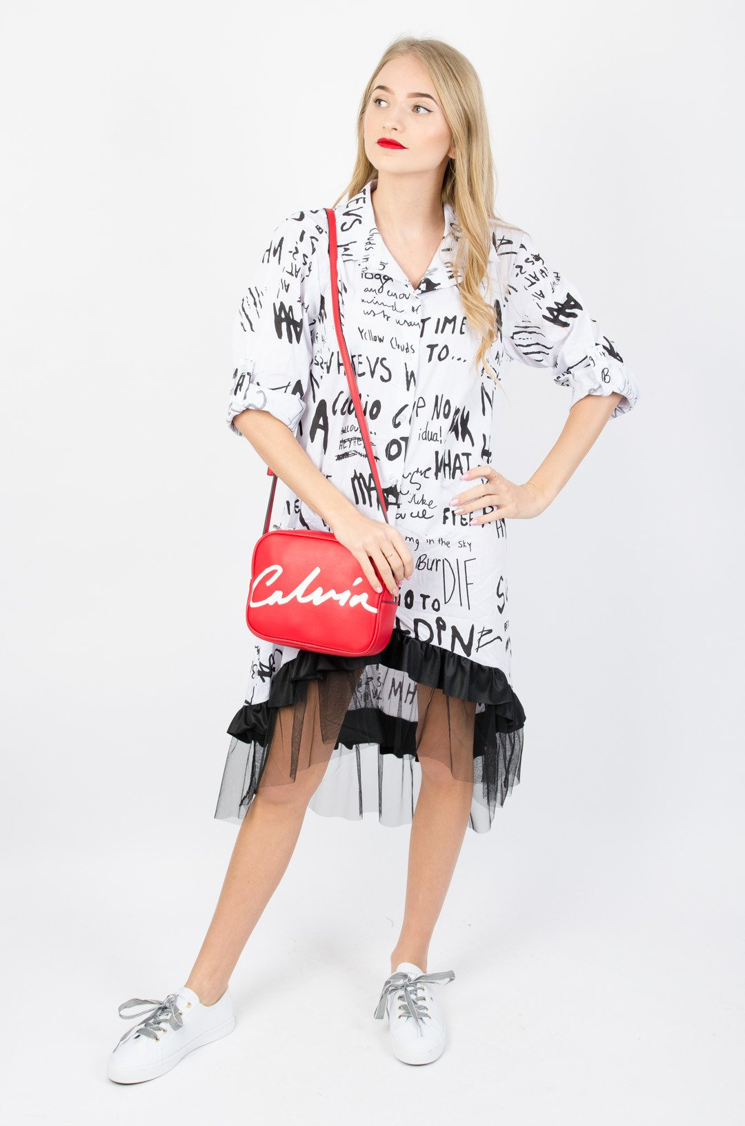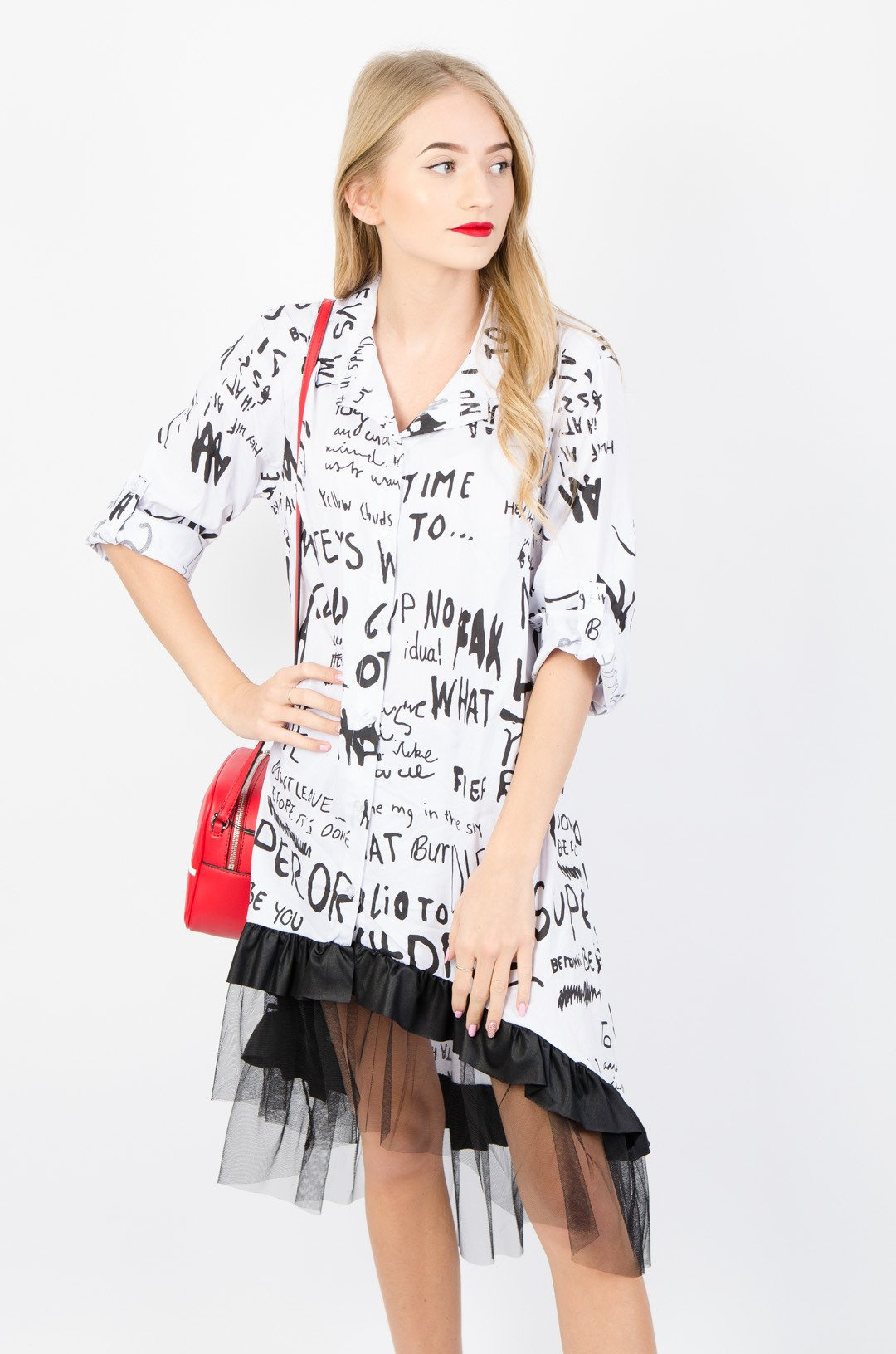 BIAŁA KOSZULOWA SUKIENKA/TUNIKA Z NAPISAMI