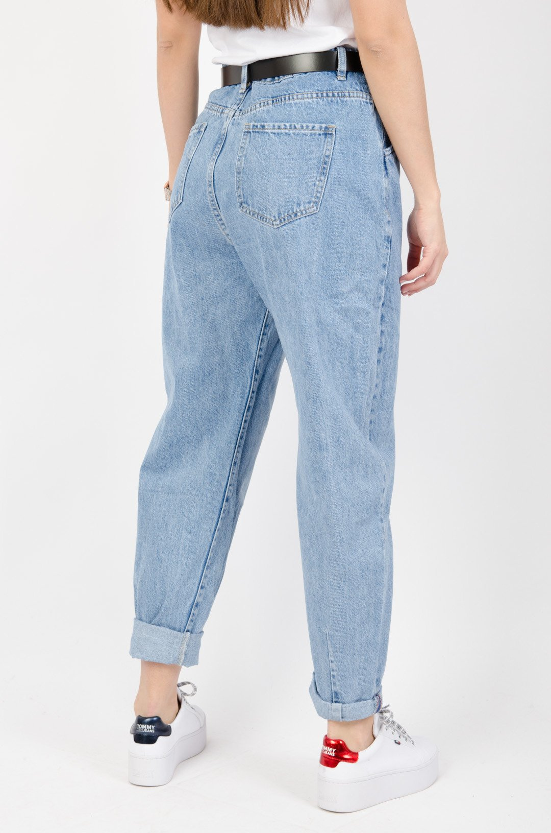 Jasne spodnie typu balloon jeans z wysokim stanem