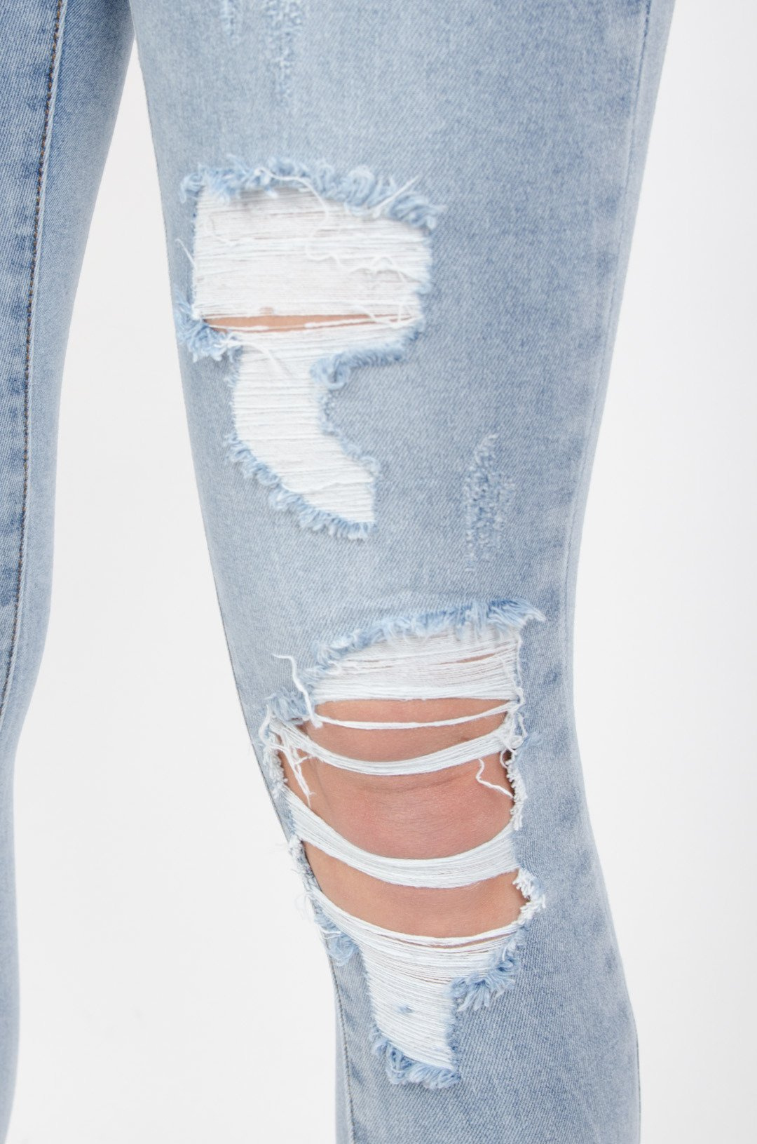 Jasne spodnie jeansowe z przetarciami-wysoki stan