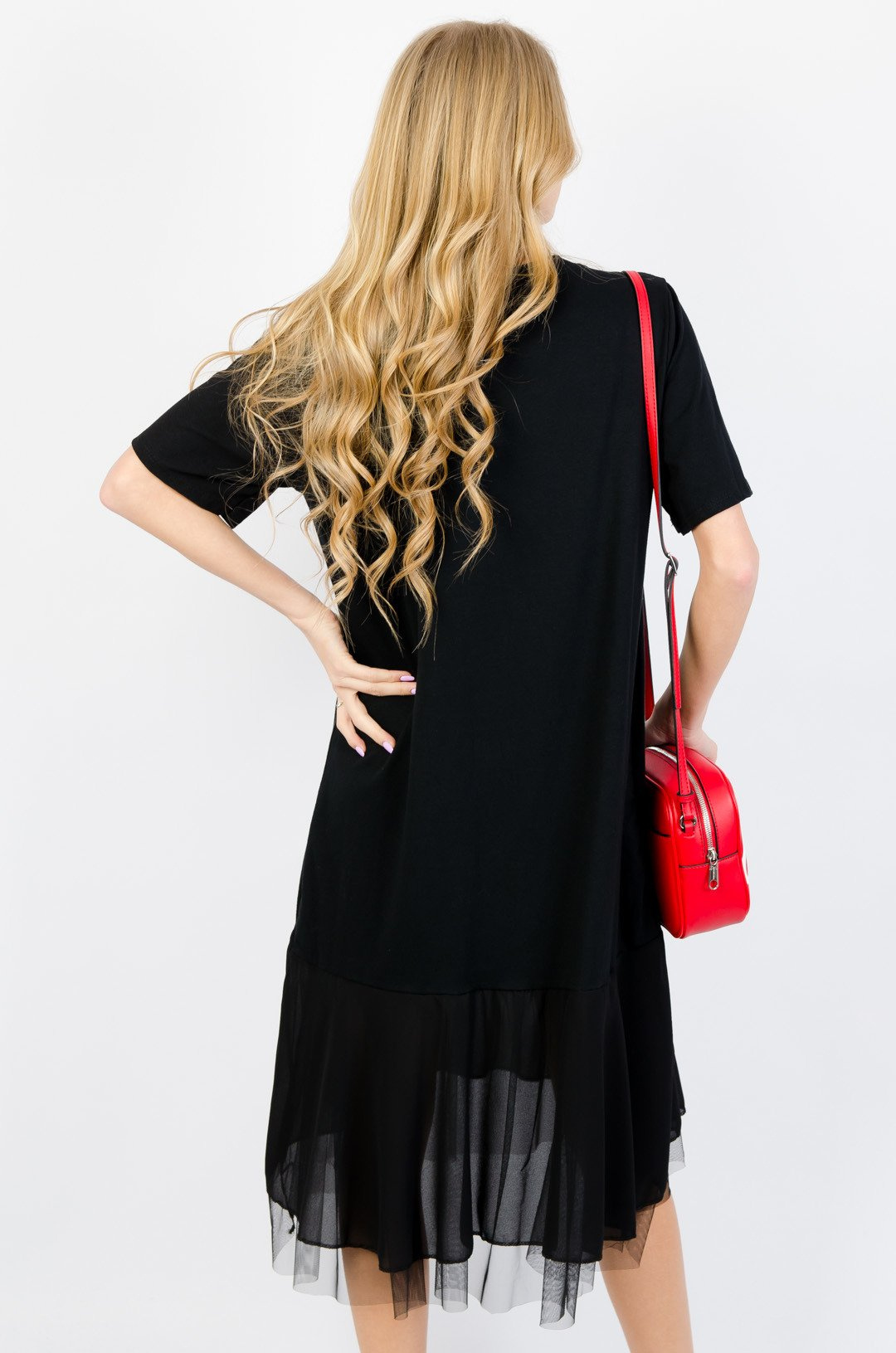 CZARNA BAWEŁNIANA SUKIENKA Z TIULEM