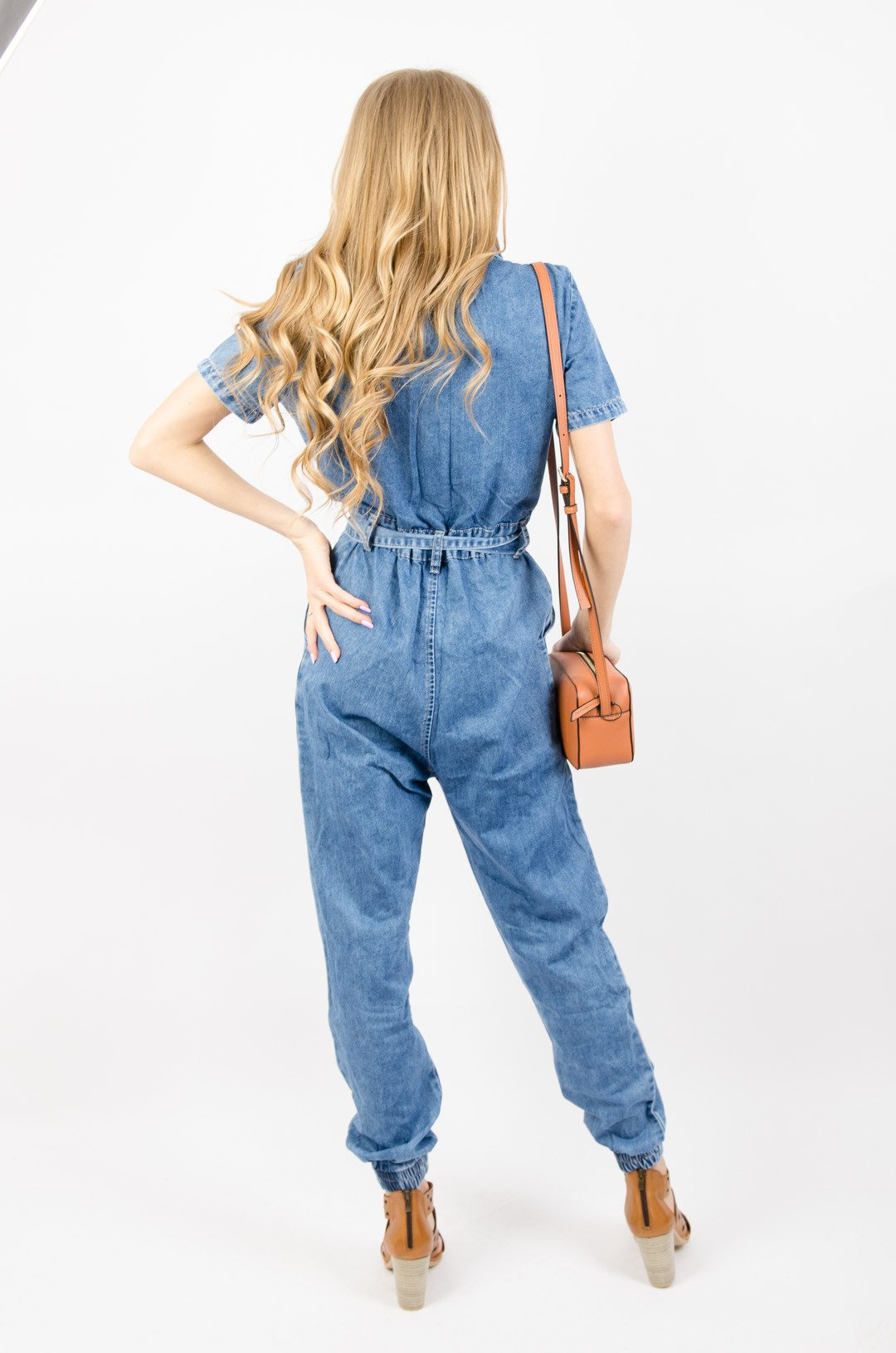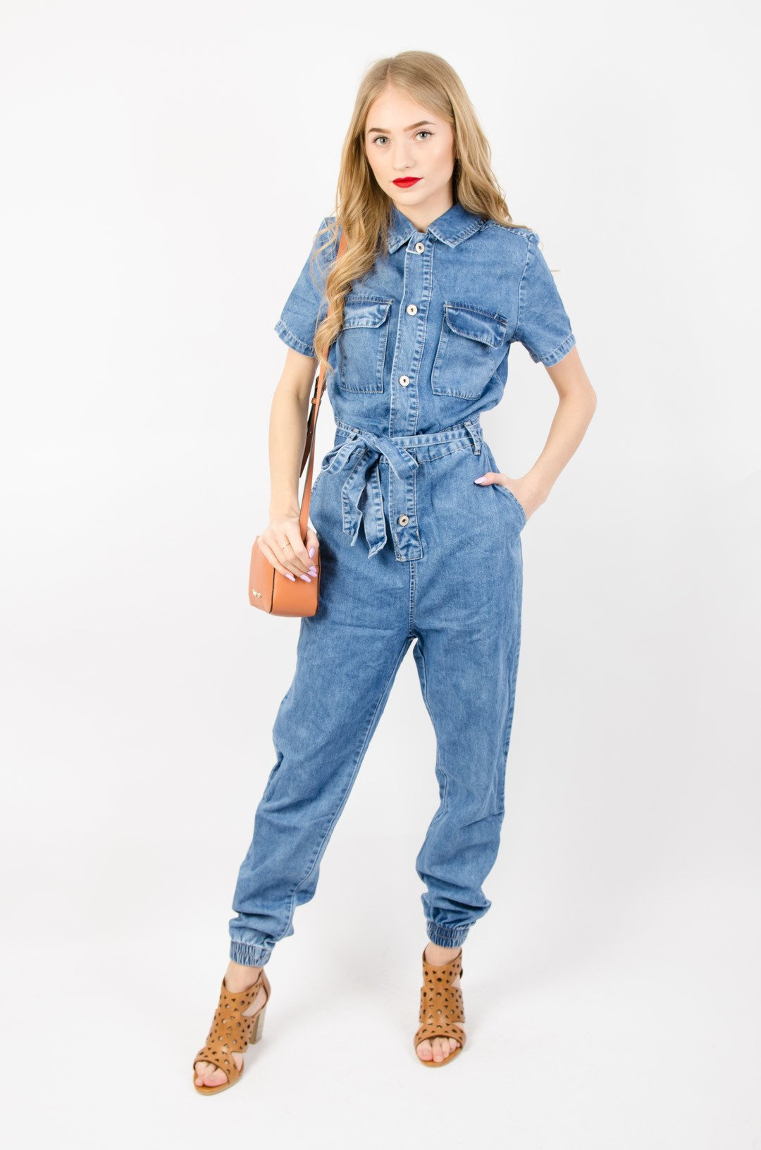 JASNY KOMBINEZON JEANSOWY ZE ŚCIĄGACZEM
