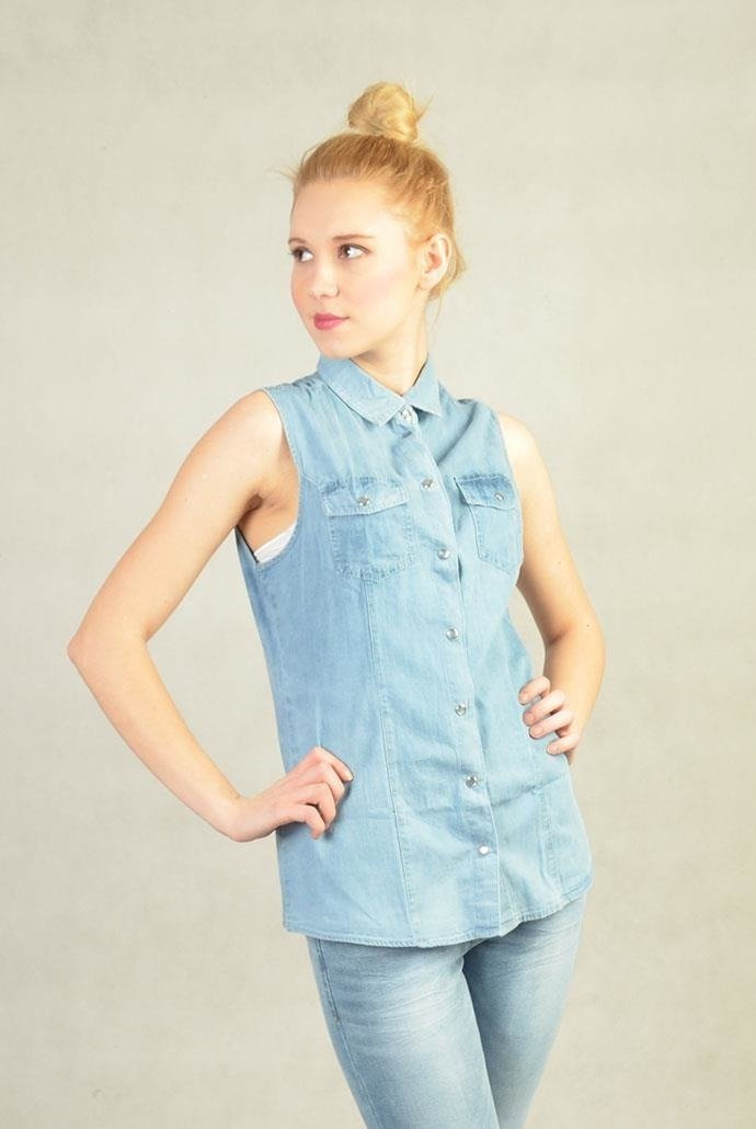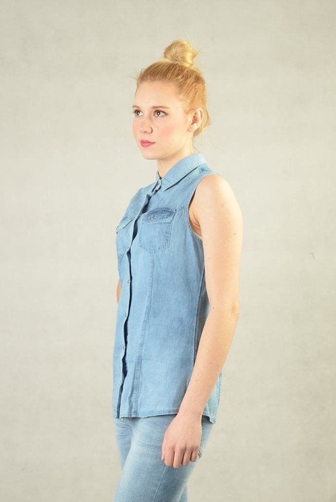 Koszula bez rękawów, zapinana na zatrzaski. Z przodu dwie kieszonki.
