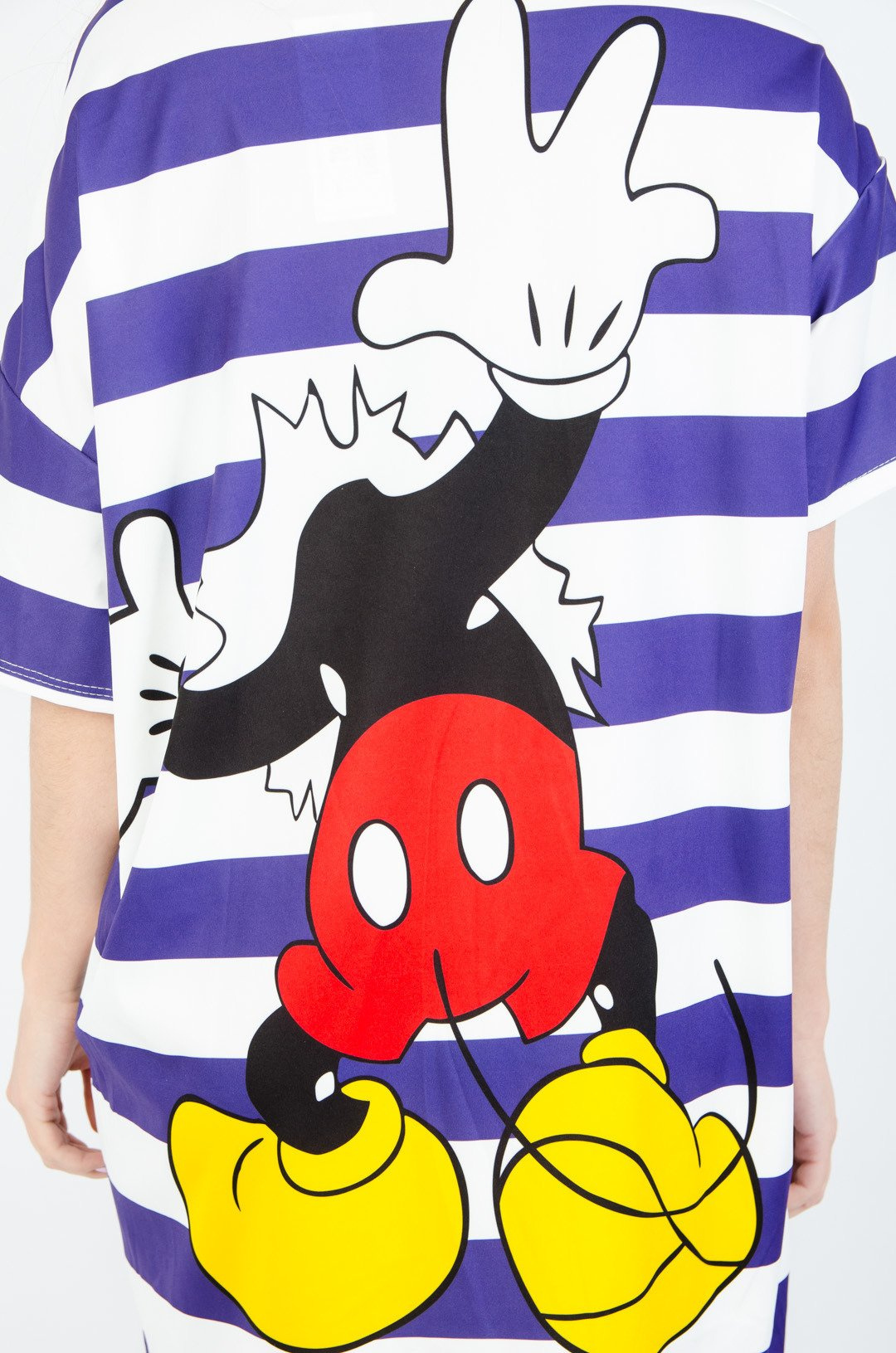 BIAŁA TUNIKA W PASKI Z APLIKACJĄ-FIOLETOWE PASKI