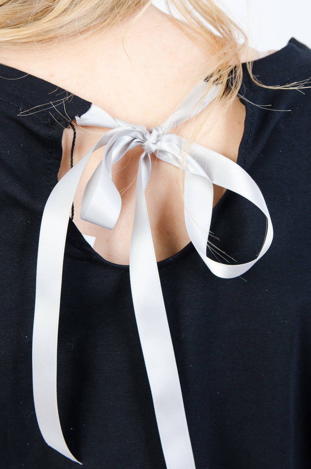 CZARNY BAWEŁNIANY T-SHIRT ZE ZŁOTYM NADRUKIEM ORAZ WIĄZANIEM NA PLECACH