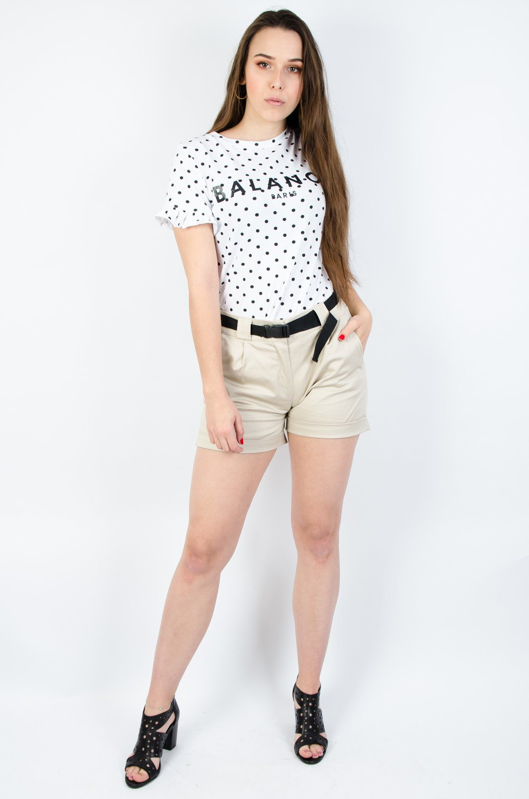 BEŻOWE MATERIAŁOWE SZORTY Z PASKIEM I NERKĄ