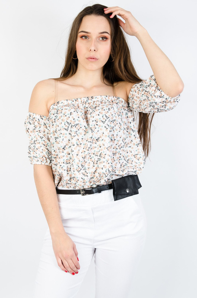 BIAŁA BLUZKA HISZPANKA W DROBNE KWIATY