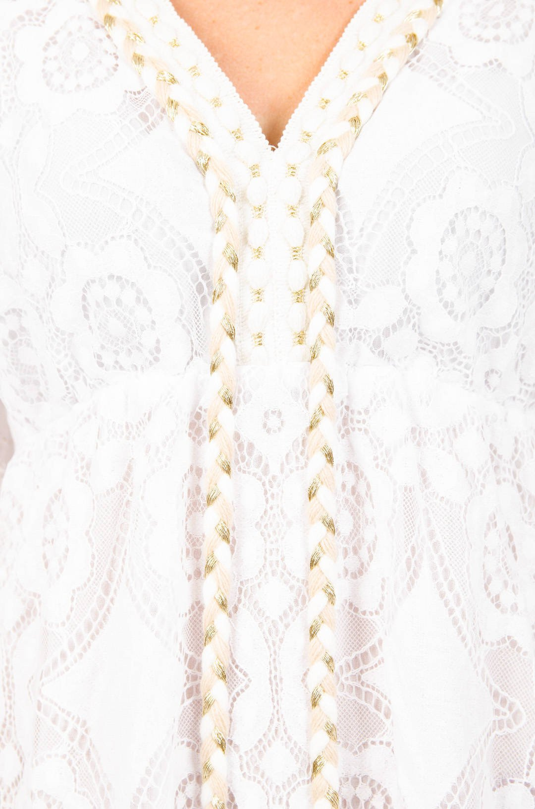 BIAŁA KORONKOWA SUKIENKA ZE ZDOBIENIEM
