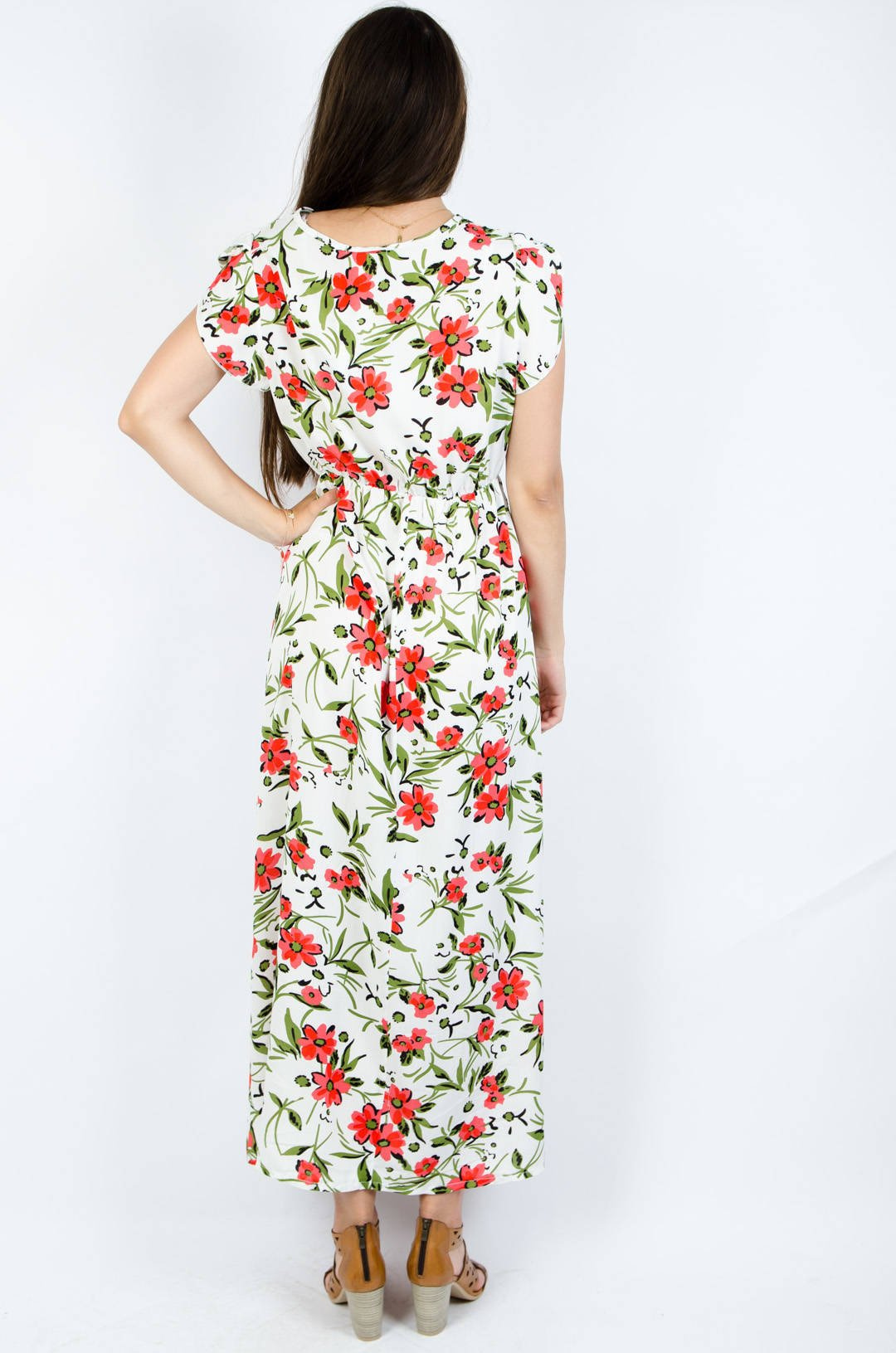 BIAŁA SUKIENKA MAXI Z KOPERTOWYM DEKOLTEM