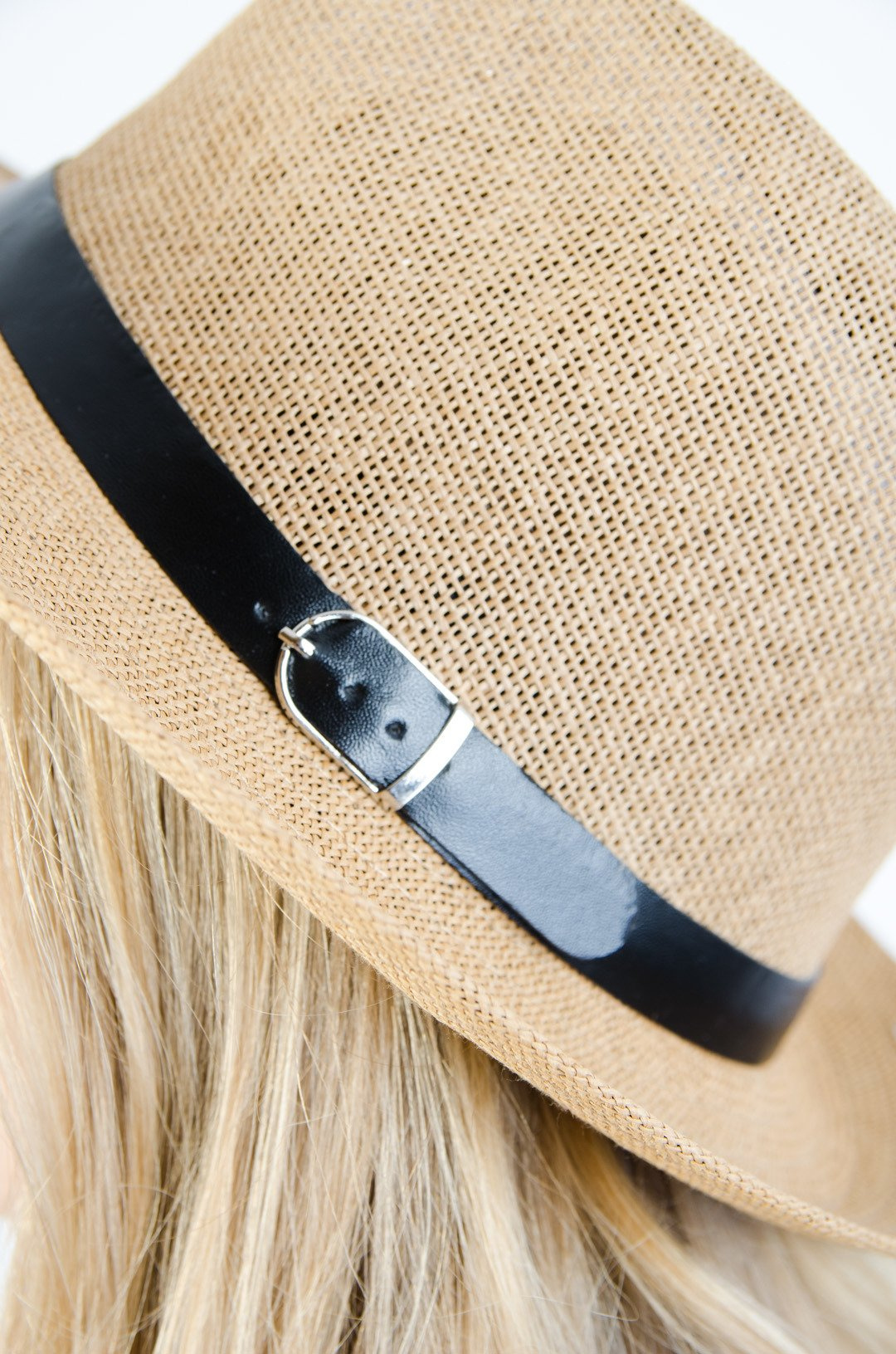 KAPELUSZ SŁOMKOWY Z PASKIEM - BRĄZOWY