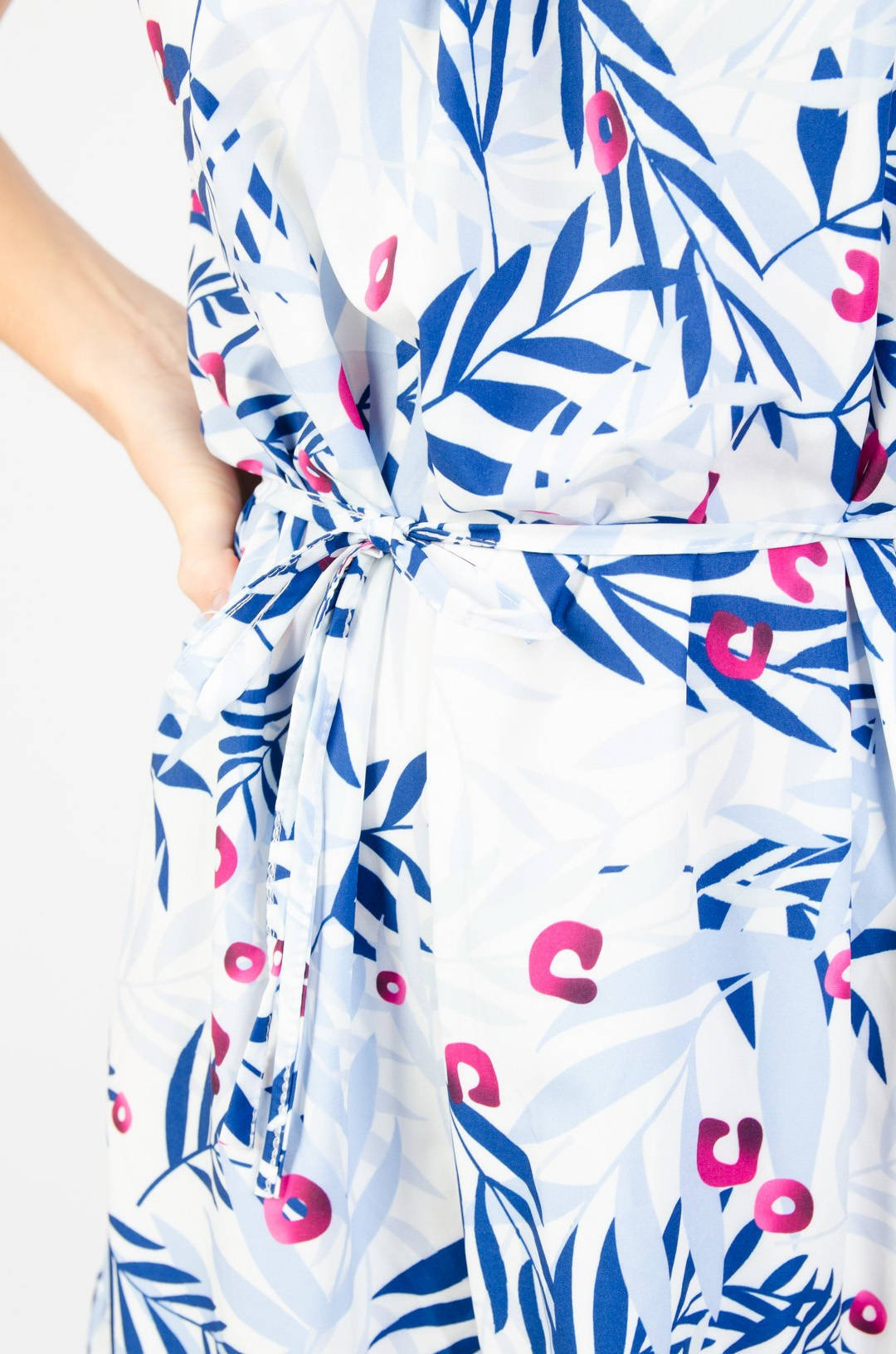 WZORZYSTA SUKIENKA WIĄZANA W PASIE - BIAŁO-GRANATOWA