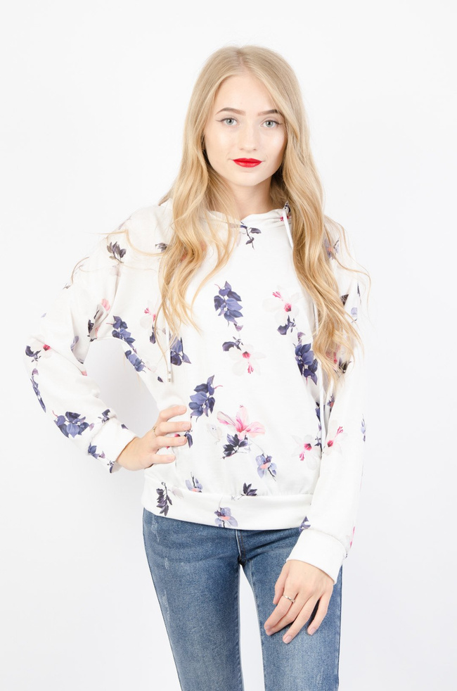 BIAŁA BLUZA Z KAPTUREM Z MOTYWEM KWIATOWYM