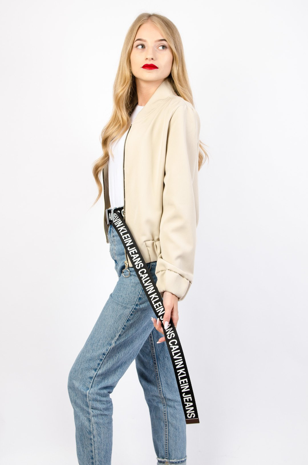 BEŻOWA BLUZA BOMBERKA ZE ZŁOTYM ZAMKIEM