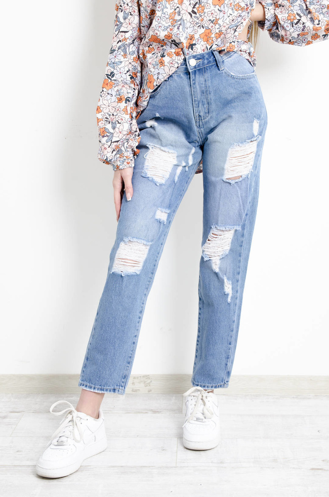 JASNE SPODNIE JEANSOWE TYPU BOYFRIEND Z PRZETARCIAMI