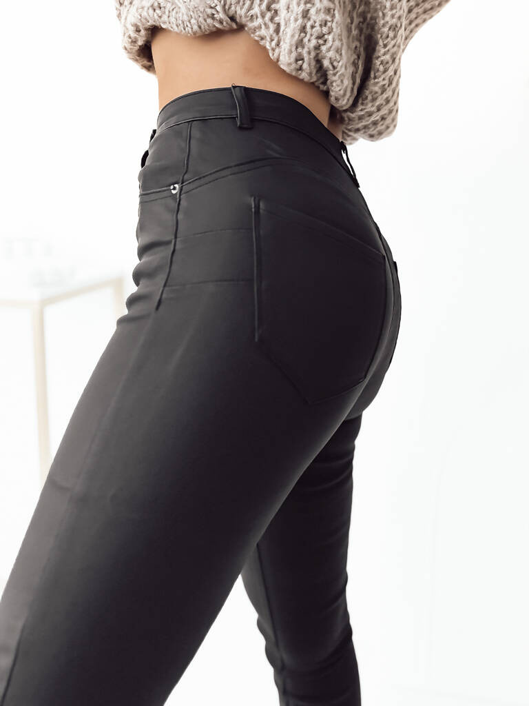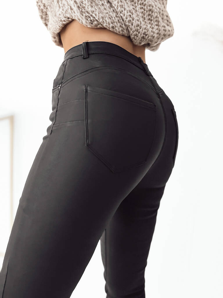 CZARNE SPODNIE WOSKOWANE PUSH UP Z WYSOKIM STANEM