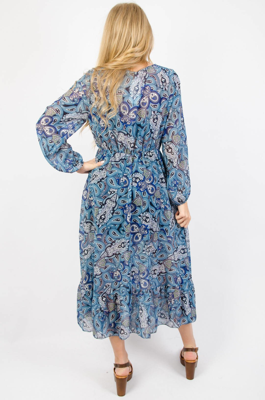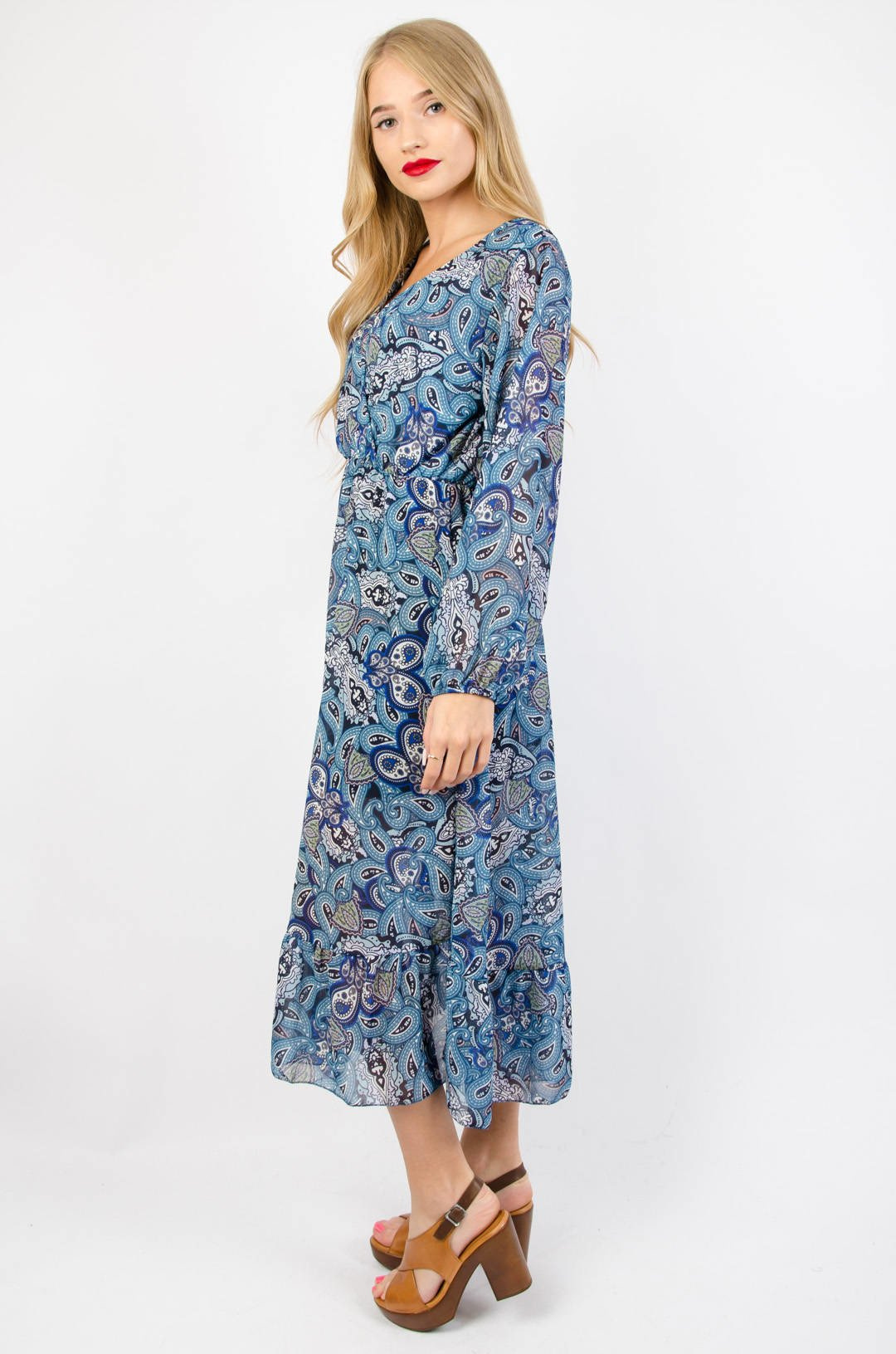NIEBIESKA SUKIENKA MIDI Z PRINTEM.