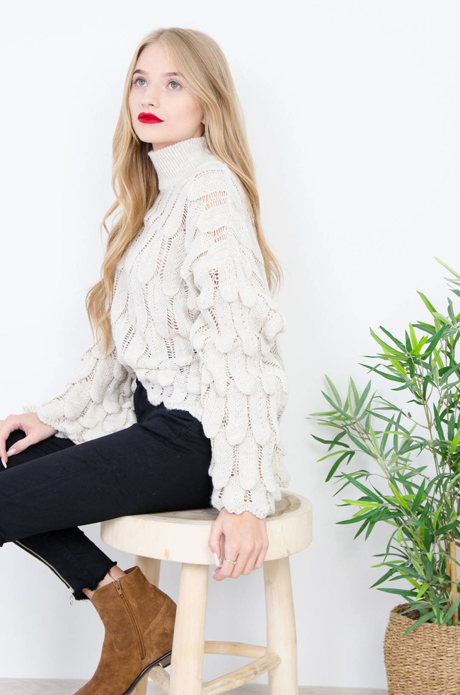 BEŻOWY OVERSIZOWY SWETER Z GRUBYM SPLOTEM