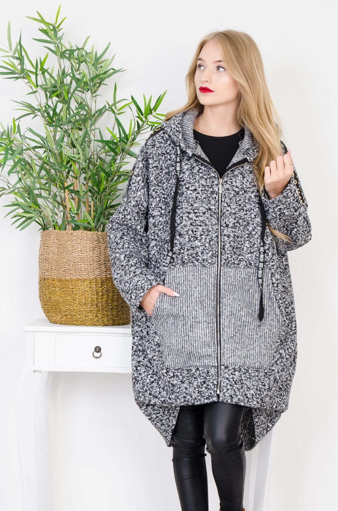 SZARY MELANŻOWY PŁASZCZ OVERSIZE