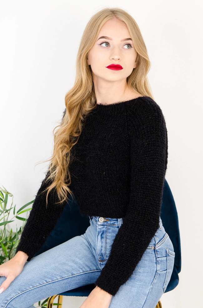 CZARNY KRÓTKI WŁOCHATY SWETER
