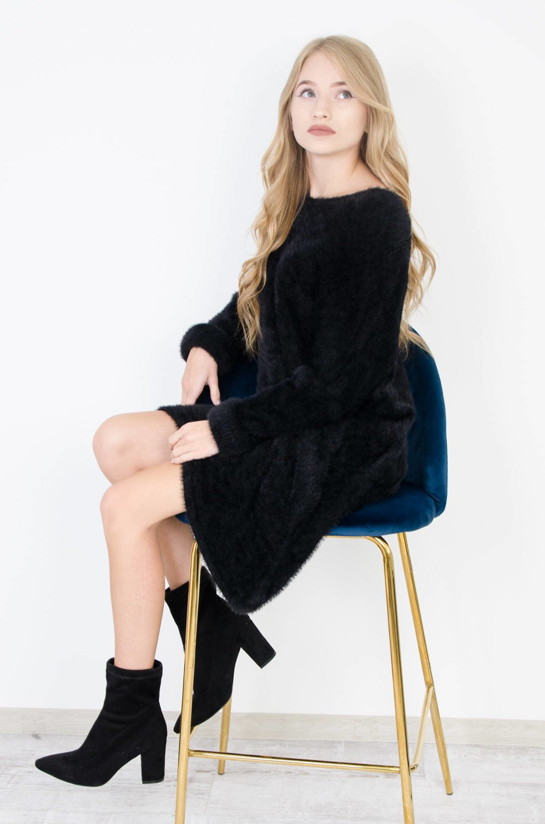 CZARNY WŁOCHATY SWETER Z DŁUGIMI BOKAMI