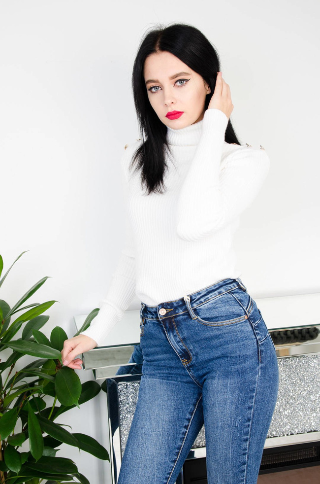 KREMOWY PRĄŻKOWANY GOLF ZE ZŁOTYMI GUZIKAMI