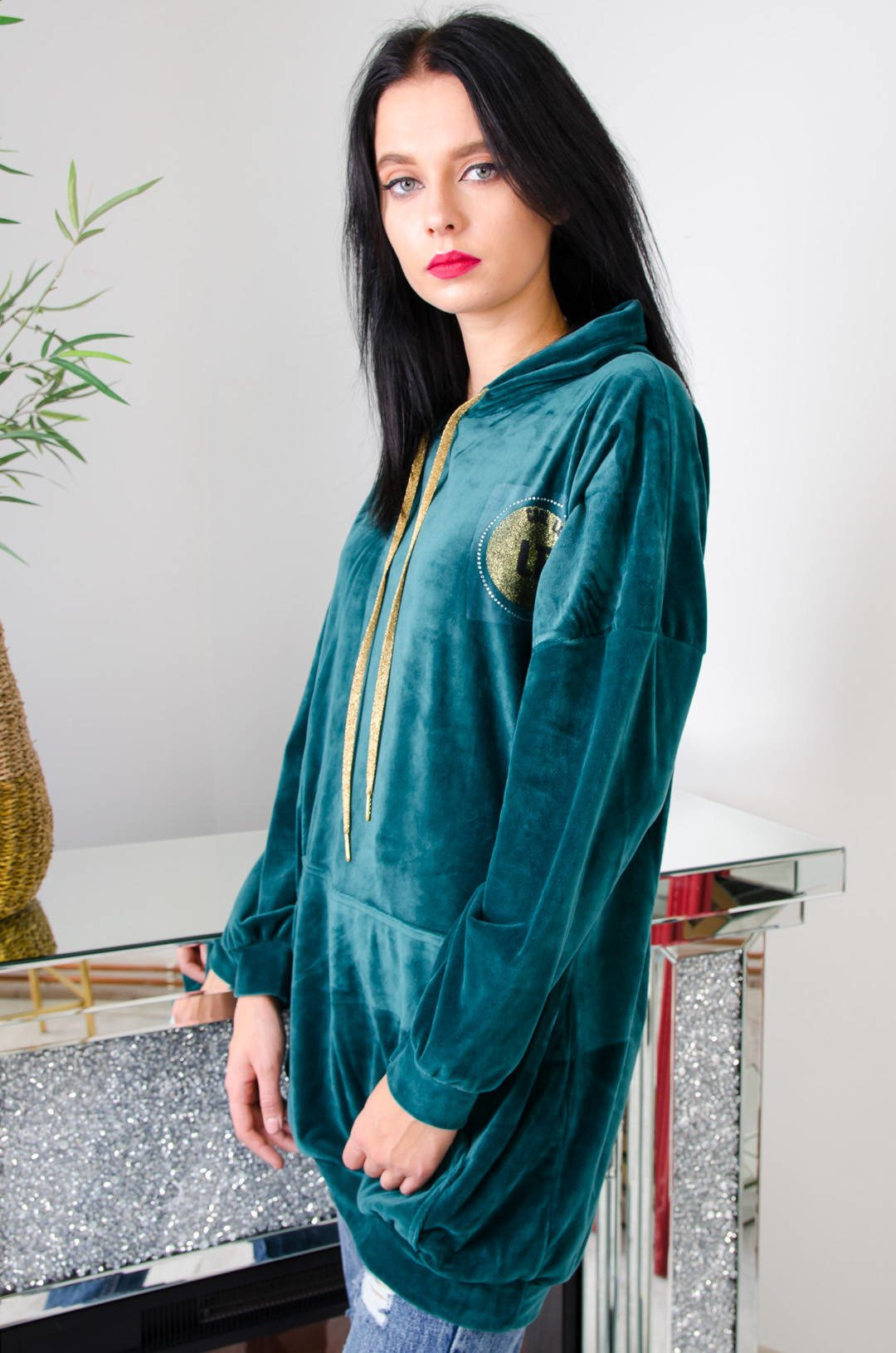 ZIELONA WELUROWA DŁUGA BLUZA Z NASZYWKĄ